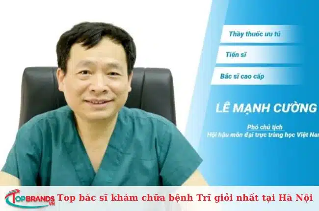 Tiến sĩ, Bác sĩ Lê Mạnh Cường chuyên khám chữa bệnh trĩ bằng y học cổ truyền, thắt trĩ và cắt trĩ. Ông hiện là Phó giám đốc bệnh viện Y học cổ truyền trung ương. Giữ chức vụ Giám đốc khoa Ngoại Bệnh viện Trung ương (2013-2017). Phó chủ tịch Hiệp hội hậu môn.