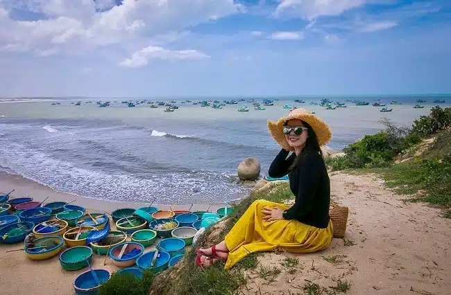Biển Hòn Rơm nằm tại ấp Long Sơn, phường Mũi Né, thành phố Phan Thiết. Nơi đây sở hữu nước xanh trong vắt, sóng êm, không có đá ngầm, bạn có thể ngồi ngắm bình minh hay hoàng hôn siêu đẹp tại đây. Vào buổi tối, bạn có thể tổ chức cắm trại, đốt lửa trại và ngắm trăng rất tình.