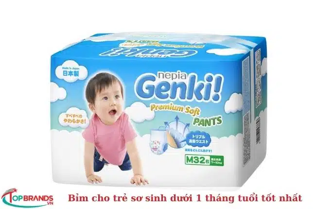 Bỉm Genki tuy độ nhận diện không quá cao so với 3 thương hiệu trên nhưng được các mẹ tin dùng bởi chất lượng, giá thành phải chăng phù hợp với nhu cầu tiêu dùng người Việt. Bỉm Genki có khả năng thấm hút cao, mỏng hơn 25% so với một số loại tả thông thường. Đây cũng là loại bỉm cho trẻ sơ sinh dưới 1 tháng tuổi khá tốt mà các mẹ bỉm sửa có thể tham khảo cho con.