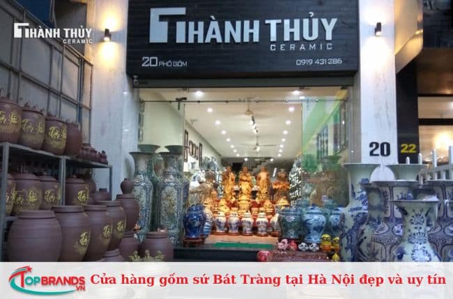 Gốm sứ Thành Thủy Ceramic là thương hiệu gốm sứ nổi tiếng đến từ Bát Tràng, nổi tiếng lâu đời. Và là địa chỉ gốm bát tràng ở Hà Nội mà khách hàng ưng ý các sản phẩm chất lượng hàng đầu. Thành Thủy Ceramic với tiêu chí “Khách hàng là thượng đế, vui lòng khách đến vừa lòng khách đi, khi mua hàng sẽ luôn nhớ đến chất lượng, chọn kỹ hàng cao cấp”. Thương hiệu có hệ thống showroom, cửa hàng tại 20 phố gốm (ngay cổng chính xã Bát Tràng, cạnh cây xà cừ lớn) và xưởng sản xuất đặt tại làng nghề Bát Tràng.