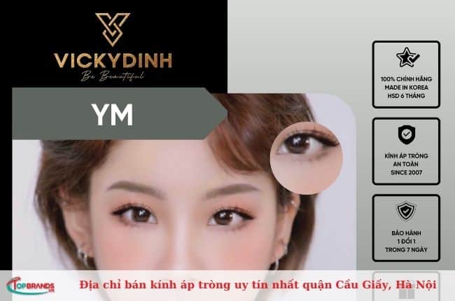 VICKYDINH là một trong những thương hiệu bán kính áp tròng nổi tiếng nhất tại Cầu Giấy, Hà Nội. Thương hiệu đã được thành lập 12 năm và tạo được uy tín, niềm tin đối với khách hàng trong và ngoài nước, đặc biệt là các ngôi sao giải trí Việt. Không chỉ vì sự an toàn và sức khỏe của người tiêu dùng, kính áp tròng của VICKYDINH còn mang tính thời trang, dẫn đầu xu hướng về chất liệu và màu sắc hot nhất thế giới. số lượng thấu kính và phụ kiện kèm theo thấu kính.