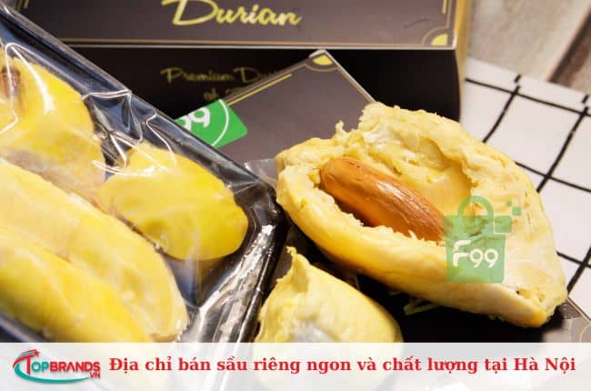 Một địa chỉ bán hoa quả tươi đa dạng và phong phú khác tại Hà Nội là Trái cây nhập khẩu F99. Hoa quả ở đây được lựa chọn rất công phu và chăm sóc nên rất tươi ngon. Tại cửa hàng, bạn có thể dễ dàng bắt gặp một bầu trời sầu riêng của mình, với những quả to, vỏ xanh đều. Trong số những loại sầu riêng ngon tại quán phải kể đến Ri6, sầu riêng Thái Lan và không thể bỏ qua hương vị thơm ngon, béo ngậy của sầu riêng Malaysia với những múi sầu riêng to tròn, vàng ươm, thơm ngon được mệnh danh là “Sầu Riêng Đại Gia”. vì giá đắt, có khi lên đến vài triệu đồng một ký.