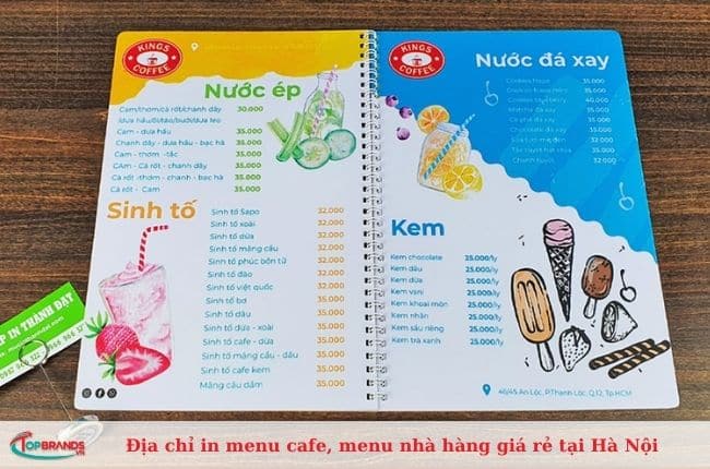 Menu chính là thứ đầu tiên kích thích sự tò mò của thực khách đối với các món ăn, đồ uống đồng thời cũng khẳng định tính chuyên nghiệp của quán cafe, nhà hàng hay nhà hàng. Vì vậy, để có được một thực đơn chuyên nghiệp, hiện đại và cạnh tranh, bạn đừng bỏ qua những địa chỉ in menu cafe, menu nhà hàng tại Hà Nội giá rẻ sau đây.
