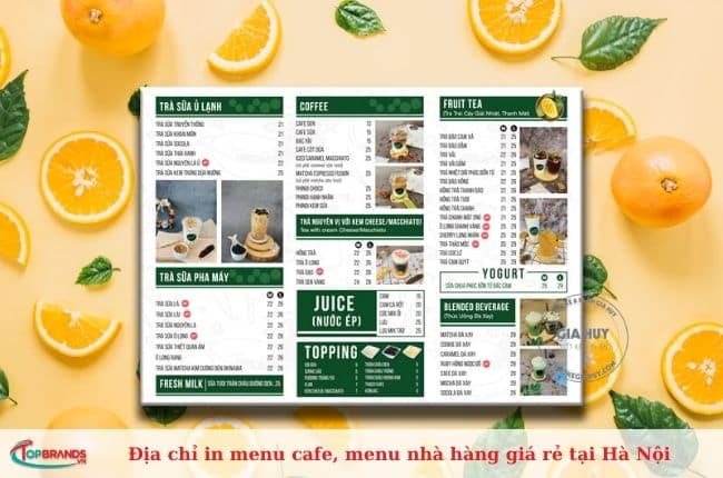 - In menu đảm bảo chất lượng và độ bền cao nhờ công nghệ in tiên tiến.