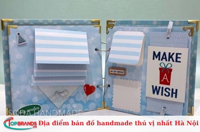 Soda Handmade – Scrapbook – Explosion box là cái tên tiếp theo mà chúng muốn gợi ý cho bạn trong danh sách các địa điểm bán đồ handmade Hà Nội uy tín và chất lượng nhất. Đây là nơi cung cấp nguyên liệu và thành phẩm lưu niệm như sổ lưu niệm, khung ảnh dập nổi,… với những mẫu mã đẹp mắt, được làm rất tỉ mỉ. Cam kết mang đến cho khách hàng những sản phẩm tốt nhất, Soda luôn chú ý đến từng chi tiết nhỏ nhất trước khi giao thành phẩm đến tay khách hàng.