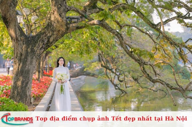 Hồ Hoàn Kiếm là một trong những thắng cảnh của thủ đô Hà Nội, là di tích có lịch sử văn hóa nghìn năm. Hồ Hoàn Kiếm hay còn gọi là Hồ Gươm được du khách nước ngoài đặt biệt danh là “lẵng hoa giữa lòng thành phố”. Đây không chỉ là nơi hóng gió, tản bộ với nhiều loài hoa, cây cảnh, tháp, rùa,… mà nơi đây còn gắn liền với sinh hoạt đời sống của người dân thủ đô… Chính vì vậy, đây cũng là địa điểm chụp ảnh Tết tại Hà Nội được nhiều người lựa chọn.