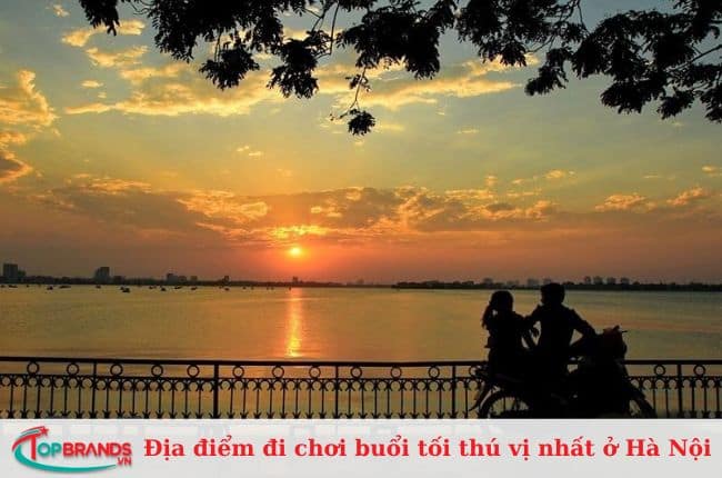 Hồ Tây là hồ tự nhiên lớn nhất thủ đô Hà Nội với diện tích lên tới 50 ha và 20 km đường bao quanh hồ. Vào mùa hè, Hồ Tây luôn lộng gió và có ánh trăng sáng nên nơi đây thu hút nhiều người bởi vẻ đẹp thiên nhiên, trong xanh. Mỗi khi hoàng hôn buông xuống và màn đêm buông xuống, hàng trăm người đổ về đây để cảm nhận không khí thoáng đãng, trong lành xua tan mọi lo toan, bộn bề của cuộc sống. Ngoài ra, ở địa điểm đi chơi buổi tối ở Hà Nội này còn có đầm sen thơm ngát ngày hè và con đường Hàn Quốc đẹp nên thơ.