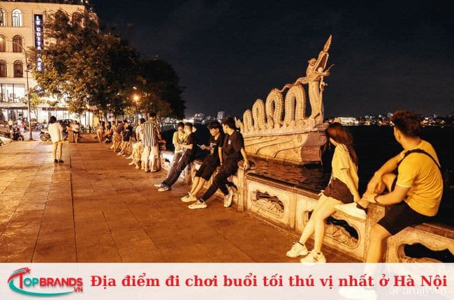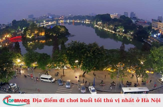 Khi màn đêm buông xuống, Hồ Gươm lấp lánh ánh đèn nhiều màu sắc, tấp nập người qua lại với nhịp sống tĩnh lặng, thanh bình và rất lãng mạn. Xung quanh hồ Hoàn Kiếm có con đường với nhiều hoạt động thú vị, là địa điểm vui chơi ở Hà Nội vào buổi tối của nhiều người dân và khách du lịch. Đến đây, bạn có thể thấy họa sĩ vẽ chân dung vẽ nên tâm hồn mình bằng bút chì và giấy, là nơi tràn ngập nụ cười của bạn bè, cặp đôi, gia đình,…
