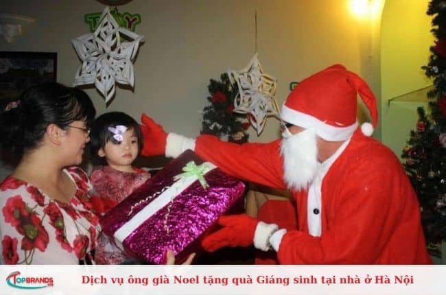 - Khách sẽ có ông già noel, công chúa tuyết mang theo những quà được bọc lại đẹp mắt kỹ càng đến cho các em nhỏ. Những món quà này có thể là do bố mẹ của các bé chọn lựa trước và đội ngũ nhân viên công ty sẽ giúp gói quà, chuyển quà đến tay các bé. Hoặc bố mẹ các bé có thể cung cấp thông tin về sở thích, tính cách của em bé, sau đó nhân viên Hanoiskyteam sẽ giúp quý khách chọn mua quà và giao quà.