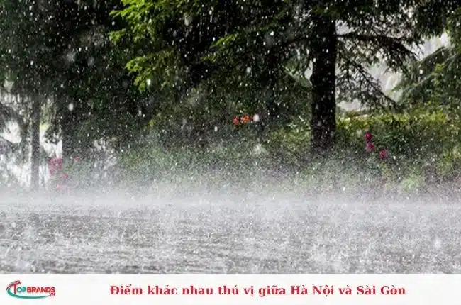 Mưa ở Hà Nội thường dai dẳng, kéo dài, không to nhưng dai dẳng, ngắt quãng, kèm theo gió lạnh thổi qua thủ đô trong khi ở Sài Gòn mưa đến nhanh rồi lại đi nhanh.
