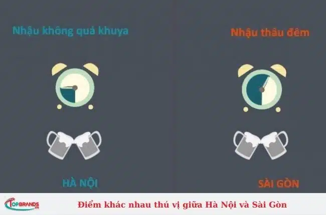 Khi người Hà Nội vui chơi, nhậu nhẹt thường biết giữ mình, trong khi người Sài Gòn có tâm lý “vui chơi thoải mái” thì lai rai đến tận sáng hôm sau. Nếu có dịp đến Sài Gòn, bạn sẽ nhận thấy hiếm có quán nào đóng cửa trước 23h, trừ khi có sự cố!