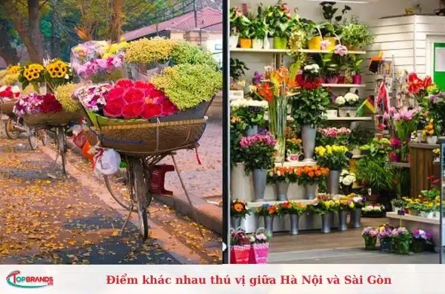 Ở Sài Gòn muốn mua hoa phải ra chợ hoặc đến tiệm bán hoa. Hà Nội được tô điểm bởi những gánh hàng rong hoa đầy màu sắc. Đơn giản, giản dị nhưng vẫn đẹp vô cùng.