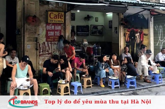 Hà Nội mùa nào bạn cũng không thể ngồi uống cà phê vỉa hè nhưng vào mùa thu bạn có thể ngồi uống cà phê cả ngày mà không biết chán. Khi nhâm nhi tách cà phê thơm, tận hưởng nắng vàng như rót mật, làn gió lạnh thổi qua, mùi mùa thu lan tỏa trong không khí và dường như lây nhiễm vào tâm trạng của mọi người, từ người bán hàng rong hay người thu gom rác.