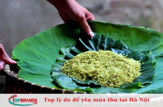 Nhớ mùa thu Hà Nội, người ta lại càng nhớ hương cốm, một món quà giản dị mà tinh tế của người Hà Nội. Dù hiện nay có thể ăn cốm tươi quanh năm nhưng chỉ có cốm mùa thu mới là loại cốm có chất lượng tốt nhất và mùa thu cũng là mùa ăn cốm xanh ngon nhất. Đối với người dân Hà Nội và du khách gần xa, hình ảnh gánh hàng rong bán cốm tươi gói lá sen luôn khiến chúng ta xúc động.
