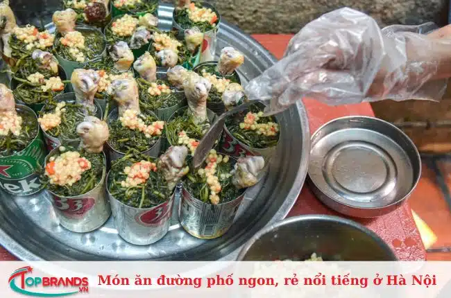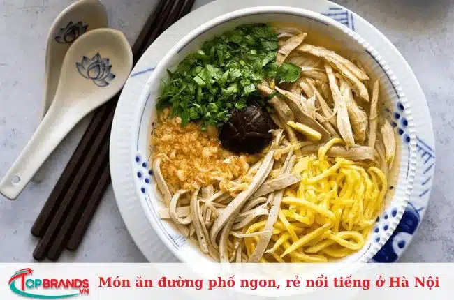 Mì gà tần là một trong số những món ăn đường phố ở Hà Nội có hương vị độc đáo mà bất cứ ai đến đây cũng phải thử một lần. Có 2 loại gà cho bạn lựa chọn: gà mái hoặc gà mái. Những miếng hoặc đùi gà được nhồi vào lon soda hoặc bia rỗng cùng với ngải cứu và các loại thảo mộc thơm tốt cho sức khỏe khác. Sau đó nó sẽ được nấu cho đến khi mềm. Bạn có thể ăn gà một mình hoặc với mì.