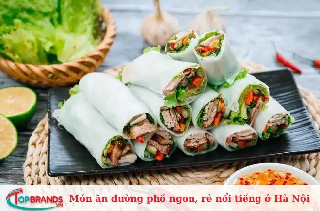 Đây là món ăn đường phố đặc trưng của Thủ đô không thể bỏ qua. Bánh cuốn được cuốn với thịt bằm và nấm rừng, rắc hành phi giòn và chấm với nước mắm thơm. Nó không cay hay cay như nhiều món ăn Việt khác nhưng bạn luôn có thể thêm ớt hoặc chanh. Theo truyền thống, bánh cuốn là món ăn sáng đã ăn sâu vào văn hóa của người dân nơi đây.