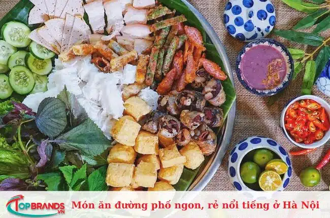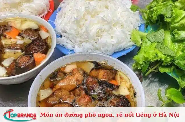 Bún chả là một trong những món ăn đường phố ở Hà Nội được yêu thích nhất. Thật hoàn hảo khi ăn bất cứ bữa sáng, bữa trưa hoặc bữa tối nào. Món ăn hấp dẫn bởi những miếng nướng được tẩm ướp gia vị đậm đà, nướng thơm ngon và chấm cùng nước mắm chua ngọt đặc trưng. Món ăn kết hợp với rau sống mang lại hương vị hoàn hảo.