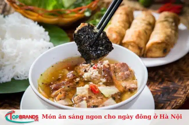Bún chả từ lâu đã là món ăn được nhiều người yêu thích. Đặc biệt, sau sự kiện Tổng thống Mỹ Barack Obama thưởng thức bún chả ở Hà Nội, món ăn này lại được săn đón hơn bao giờ hết. Vị ngon của bún chả nằm ở nước chấm. Nước chấm phải đủ ngọt để khi thêm rắc vào vẫn giữ được hương vị đậm đà và không bị nhạt nhẽo. Có hai loại thịt nướng ăn cùng nhau: thịt viên và thịt miếng tùy vào sở thích của mỗi người mà có những lựa chọn khác nhau. Nhưng thịt phải mềm và nướng cho chín, không bị cháy. Bún chả cũng nên ăn kèm với cà rốt, đu đủ và một số loại rau sống để có đủ hương vị. Một buổi sáng thức dậy, ra phố ăn một bát bún nước chấm ấm áp là đủ ấm cả ngày. Bạn nên nếm thử tại nhà hàng: Sinh Từ Bún Chả. Vào tiết trời se se lạnh, ngôi trong quán với món ăn sáng ngày đông ở Hà Nội ấm áp, ngon tuyệt này thì còn gì bằng.