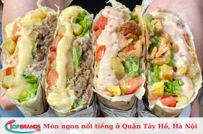 Bánh Taco được coi là món ăn quốc gia của người dân Mexico. Bánh được làm từ bột ngô hoặc bột mì và có nhiều nhân khác nhau. Hiện nay ở Hà Nội có rất nhiều quán taco mở cửa. Có rất nhiều cửa hàng, nhà hàng phục vụ món ăn độc đáo này nhưng đặc biệt ở Hồ Tây, Hey Pelo French Tacos là ấn tượng nhất. Hey Pelo French Tacos nổi tiếng với món Taco Katsu Chicken. Thịt bò siêu mềm, ớt thơm cay cay kèm ớt chuông, cộng thêm một miếng thịt gà cực to ở giữa. Món Taco ở đây khá đặc biệt với sốt mù tạt mật ong hơi ngọt nhưng một số người không ăn được thì thấy hơi ngán.