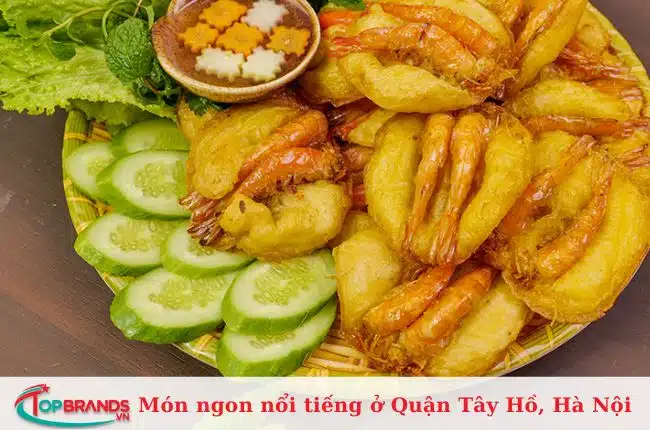 Nếu bạn muốn thưởng thức món ngon tại quận Tây Hồ này thì, không thể bỏ qua quán bánh tôm Thanh Mai. Quán không có view đẹp hay không gian rộng lớn nhưng vẫn luôn đông khách. Bánh tôm ở đây có vỏ bánh dày, được chiên giòn và nhân tôm to, tươi ngọt. Nếu bạn muốn thử một địa điểm khác, quán Hiền Hảo cũng là một lựa chọn tuyệt vời. Bánh tôm ở đây có vỏ bánh dày, được chiên giòn và nhân tôm to, tươi ngọt.