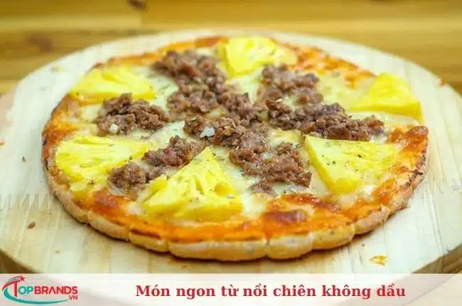 Bạn làm sốt bò bằm với cà chua, hành tây cùng một chút ketchup, nêm nếm phù hợp với khẩu vị. Quét một lớp ketchup lên đế bánh pizza rồi cho sốt bò bằm cùng ít quả oliu. Rắc thêm phô mai lên mặt bánh và nướng trong 5 phút với 180 độ. Đây là một trong những món ngon từ nồi chiên không dầu được nhiều người làm.