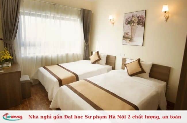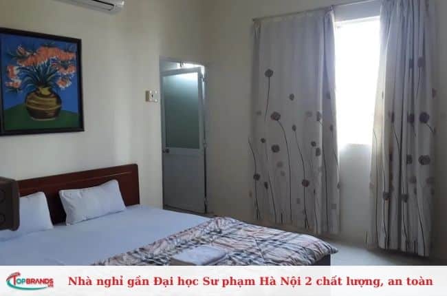 Địa chỉ tiếp theo mà chúng tôi muốn giới thiệu tới các bạn đó chính là nhà nghỉ Liên Minh 1. Có dịch vụ phòng đơn và phòng đôi 2 giường. Mỗi phòng đều có đủ giường, chăn, tủ, nhà vệ sinh và phòng tắm riêng. Không gian khá rộng và sạch sẽ. Ưu điểm lớn nhất của Nhà nghỉ Liên Minh 1 là nằm gần trường Đại học Sư phạm Hà Nội 2, cách trường chỉ khoảng 400m. Ngoài ra, Liên Minh Motel 1 còn có cơ sở thứ 2 nằm trên đường Võ Thị Sáu và cách trường khoảng 500 m.