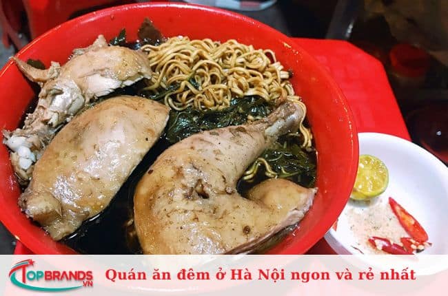 Nếu bạn đang thắc mắc nên ăn gì ở Hà Nội về đêm? Vậy hãy thử món mỳ gà tần Hàng Bồ nhé! Một bát mỳ nóng hổi vào đêm cùng thịt gà hầm trong lon, mềm thơm, nước dùng thanh ngọt. Chắc chắn sẽ không làm thất vọng.