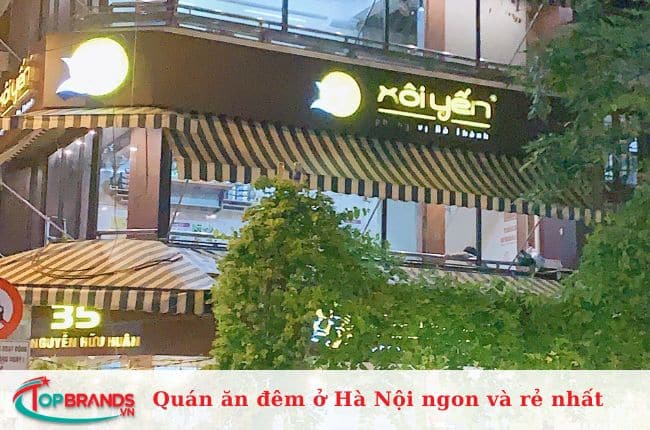 Quán xôi Yến – quán ăn mở 24/24 ở Hà Nội là điểm đến ẩm thực đêm quen thuộc ở Hà Nội. Xôi thập cẩm, xôi thịt xá xíu, xôi gà xào nấm, xôi thịt pate… đủ sự phong phú cho tín đồ ăn khuya. Đặc biệt, có nhiều topping để thêm vào xôi. Không chỉ ngon miệng, quán còn nổi tiếng với phục vụ nhiệt tình và chu đáo.