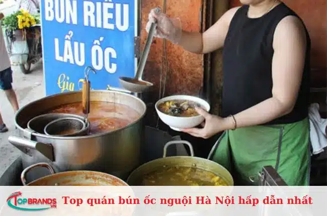Quán bún ốc Bà Ngoại là một trong những quán lâu đời nhất ở Hà Nội, nổi tiếng với bún ốc nguội cay nồng và thơm của dấm bỗng, kết hợp với ốc to mẩy thơm giòn. Ngoài bún ốc nguội, quán còn phục vụ nhiều món ốc khác như ốc hấp lá gừng, chả ốc, nem ốc.