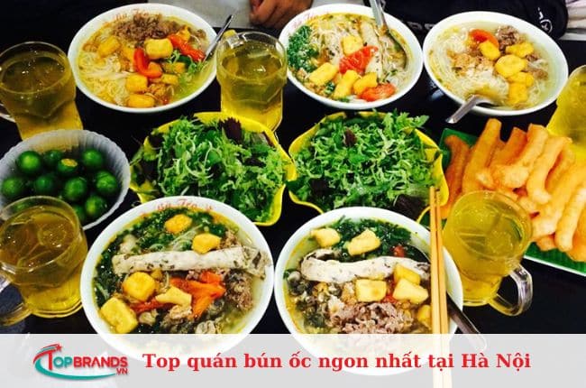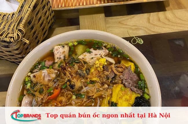 Quán bún ốc ở Hà Nội này nổi tiếng với bún ốc, đặc biệt là bún ốc kẹp nướng than hoa. Nước dùng truyền thống, ốc to béo ngon miệng, và đặc biệt. Nơi đây tự làm lọ dấm ớt tỏi siêu ngon, giúp tránh cảm giác ngán khi thưởng thức.