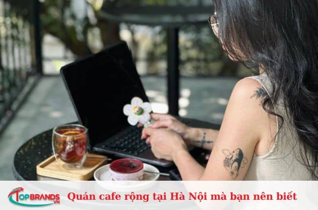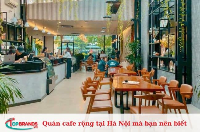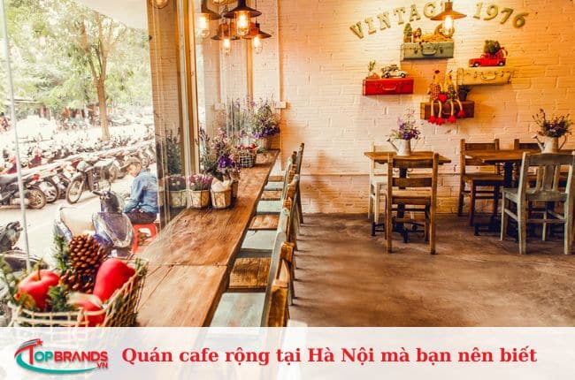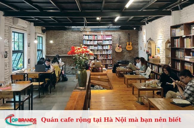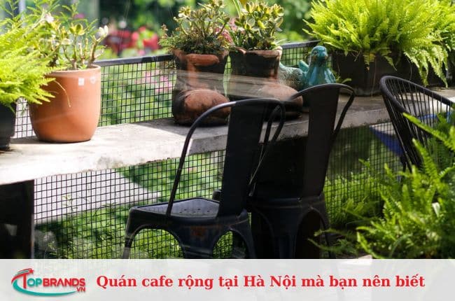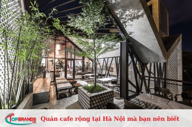 Quán cafe rộng tại Hà Nội này luôn tạo cảm giác cho khách hàng gần gũi hơn với thiên nhiên, dù chỉ trang trí đơn giản nhưng không kém phần bắt mắt. Bạn có thể lựa chọn ngồi bên trong có hệ thống đèn chiếu sáng, điều hòa hoặc tận hưởng sự mát mẻ, không khí trong lành ở phía bên ngoài bầu trời. Menu đồ uống đa dạng cùng những chiếc bánh ngọt béo béo, thơm ngon.