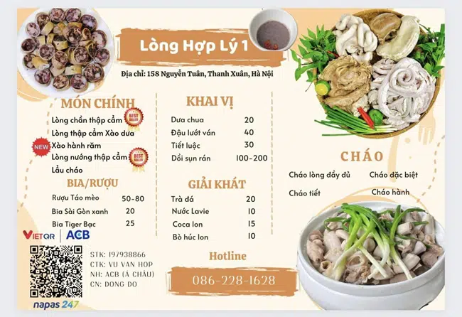 Trang Lòng Cháo Quán - quán cháo lòng Hà Nội ngon đậm vị