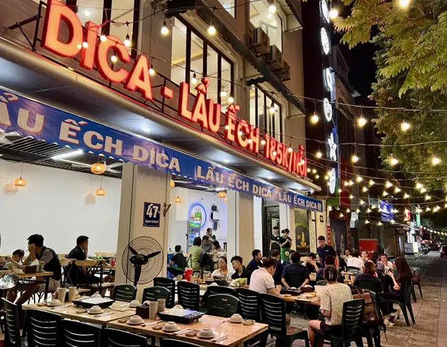 Tuy chỉ là quán ăn bình dân nhưng lẩu ếch DICA luôn đảm bảo chất lượng với mức giá phù hợp. Những nồi lẩu ếch tại đây chinh phục khách hàng bởi nước dùng ngon ngọt, nêm nếm đủ vị. Thịt ếch tươi ngon được chế biến gia vị đậm đà. Từ khai vị đến các món rau nhúng lẩu đều đem đến cho thực khách những cảm nhận thú vị nhất.