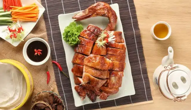 Những ai đã trải qua trải nghiệm ăn vịt quay Bắc Kinh tại Jacky đều không thể cưỡng lại hương vị tuyệt vời của món ăn này. Lớp da vịt quay được chế biến đến độ giòn tan, tạo nên một trải nghiệm ẩm thực độc đáo. Thịt vịt bên trong vẫn giữ nguyên độ mềm mại và hương vị ngọt ngào như thịt luộc truyền thống. Điểm đặc biệt của vịt quay tại quán không chỉ là ở lớp da giòn mà không béo, mà còn ở cảm giác nhai thịt dai mà không hề bở. Đây là một trải nghiệm ẩm thực vô cùng ấn tượng, khiến người thưởng thức cảm thấy sự hài lòng và vừa miệng. Đặc biệt, khi ăn kèm với nước chấm, hương vị thơm ngon của vịt quay trở nên hấp dẫn và tinh tế hơn bao giờ hết.