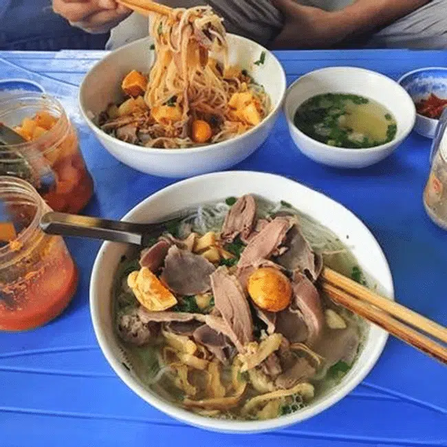 Quán Loan Béo nổi tiếng với món mì ngan thập cẩm – mì ngan tim mề trứng non, là điểm đến lý tưởng, đặc biệt được giới trẻ yêu thích. Cô chủ cửa hàng không chỉ nổi tiếng với sự niềm nở, vui tính mà còn chăm sóc và phục vụ khách hàng một cách tận tâm. Đây sẽ là trải nghiệm ẩm thực độc đáo và đáng nhớ cho những ai yêu thích sự phong cách và ngon miệng.