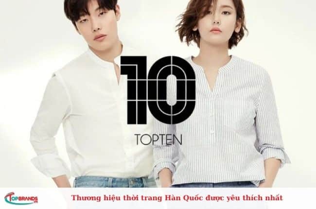 TOPTEN là thương hiệu thời trang Hàn Quốc cung cấp đa dạng các sản phẩm dành cho cả nam và nữ, bao gồm quần jeans, áo sơ mi, áo phông, trang phục công sở và các trang phục cơ bản hàng ngày. Thương hiệu chú trọng vào thiết kế đơn giản, tinh tế nhưng vẫn duyên dáng với những họa tiết mềm mại, phù hợp với nhiều phong cách và không bao giờ lỗi mốt.