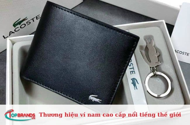 Logo cá sấu của Lacoste nổi tiếng toàn cầu. Thương hiệu này bắt đầu từ năm 1933 với áo sơ mi thun thể thao và sau đó mở rộng sang sản xuất ví da nam. Ví da Lacoste có thiết kế đa dạng và độ bền cao, thu hút cánh mày râu trên khắp thế giới bởi sự trẻ trung và năng động.