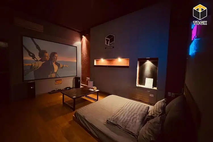 Tự hào là quán cafe phim đầu tiên tại Hà Nội, T-Box Cafe mang đến cho khách hàng sự khác biệt hẳn so với các quán cafe phim khác ở hệ thống phòng chiếu phim được đầu tư kĩ lưỡng. Với hệ thống 11 phòng chiếu trang bị màn hình chiếu lớn cùng với dàn loa hiện đại mang đến âm thanh hình ảnh chân thật sống động sẽ khiến bạn tưởng tượng như mình đang ở trong một rạp chiếu phim mini mô phỏng. Sức chứa tối đa của mỗi phòng lên đến 30-35 người nên bạn hoàn toàn có thể tổ chức những buổi party sinh nhật, kỉ niệm nho nhỏ tại đây.