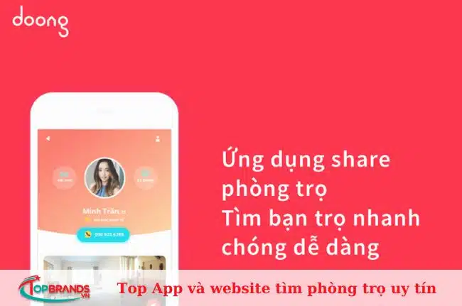 Doong là một trong các app tìm phòng trọ cho sinh viên được rất nhiều bạn trẻ tin dùng, nó bao gồm thông tin phòng trọ và tìm bạn ở ghép. Khác với các ứng dụng tìm phòng trọ khác, Doong yêu cầu bạn phải tự đăng các thông tin mình muốn tìm lên ứng dụng. Có thể nói ứng dụng này như một group chat để trao đổi và tìm kiếm phòng trọ phù hợp với nhu cầu của bạn nhất. Chính vì thế mà thế mạnh của Doong là tìm người ở ghép.
