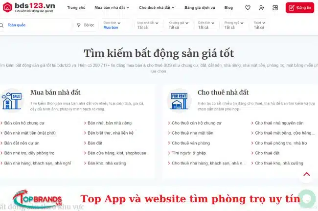 Website tìm kiếm phòng trọ Bds123.vn