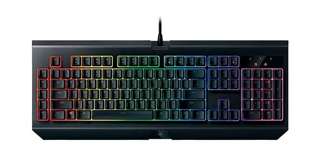 Đây là một trong các lựa chọn lý tưởng dành cho những người muốn sở hữu loại bàn phím cơ vừa thuận lợi để chơi game và vừa làm việc hiệu quả. Có nguồn gốc từ Nhật Bản và có chất lượng rất nổi bật. Bàn phím cơ Razer BlackWidow Chroma V2 có thiết kế ánh sáng RGB độc quyền cũng như tích hợp Synapse tùy chỉnh giúp hỗ trợ chơi game hiệu quả. Tuy nhiên bàn phím này không có thanh phương tiện nên sẽ bất lợi khi dùng.