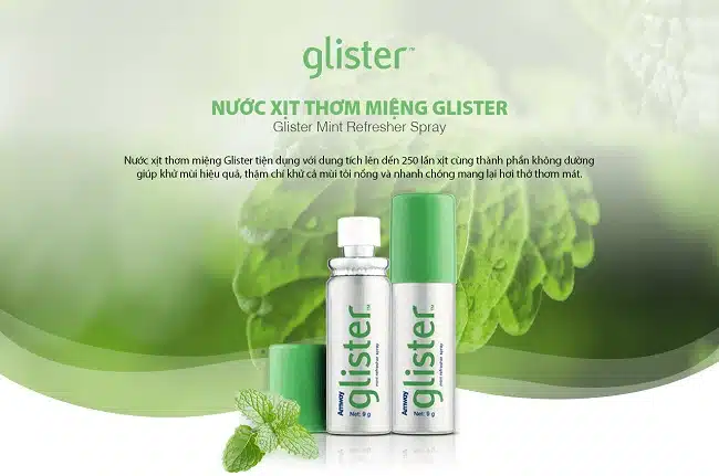 Xịt thơm miệng Glister Amway giúp bạn giải quyết tận gốc những vấn đề về răng miệng, đánh bay mùi hơi thở hôi, nặng mùi, khó chịu do ăn những loại thức ăn dễ gây hôi miệng như cá, tỏi, khô, mắm,… giúp bạn tự tin trong giao tiếp nhờ hơi thở thơm mát cùng với nụ cười trắng sáng, đầy quyến rũ.
