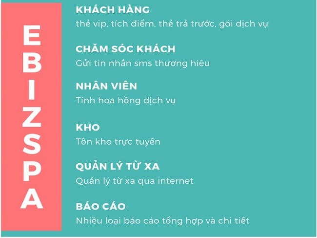 Trong thời đại công nghệ phát triển mạnh mẽ, việc ứng dụng phần mềm quản lý trong doanh nghiệp ngày càng phổ biến. eBizSpa là phần mềm quản lý spa, salon chuyên nghiệp do Công ty CP Điện tử Doanh Nghiệp phát triển. Sản phẩm này giúp các trung tâm spa, salon tóc nâng cao hiệu quả quản lý, tối ưu vận hành và đưa ra các chính sách kinh doanh, khuyến mãi như thẻ thành viên, tích điểm, quà tặng một cách dễ dàng.