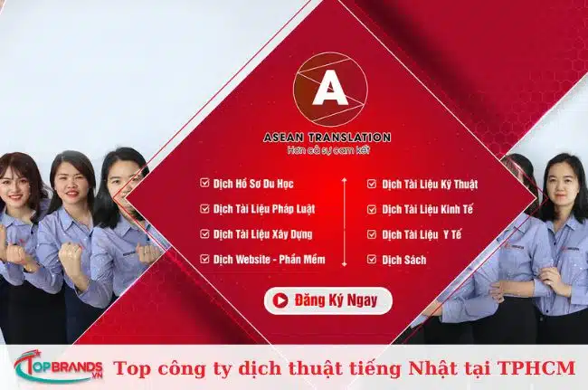 Công ty dịch thuật tiếng Nhật nào tốt nhất ở Sài Gòn mà bạn nên tham khảo? Và gợi ý tiếp theo mà Topbrands muốn giới thiệu đến bạn chính là Công ty dịch thuật Asean. Tuy chỉ là một cơ sở mới, nhưng công ty đã phát triển khá nhanh và gây dựng được niềm tin trong lòng của khách hàng.