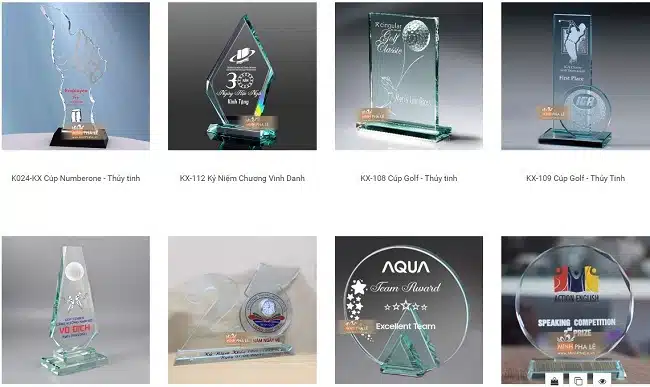 - Các sản phẩm quà tặng, cúp, kỷ niệm chương, biểu trưng được làm bằng tất cả các chất liệu.