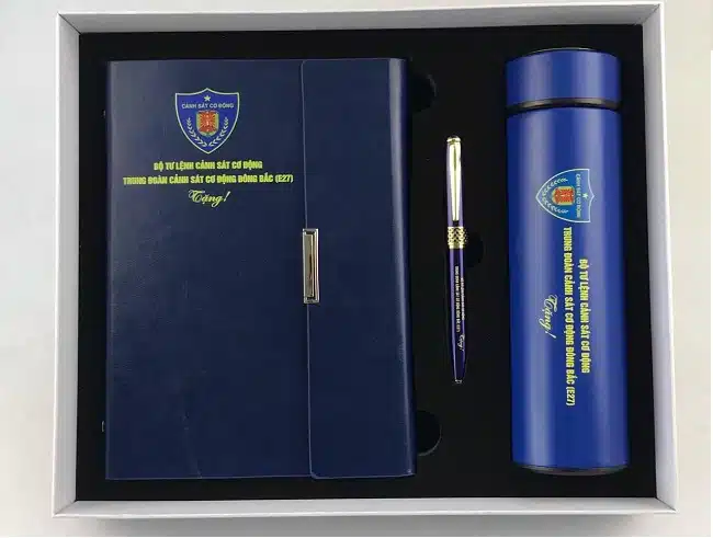 - Nhóm sản phẩm quà tặng sự kiện – hội nghị: Gift set sổ da bút ký, pin sạc dự phòng, bình giữ nhiệt, USB.