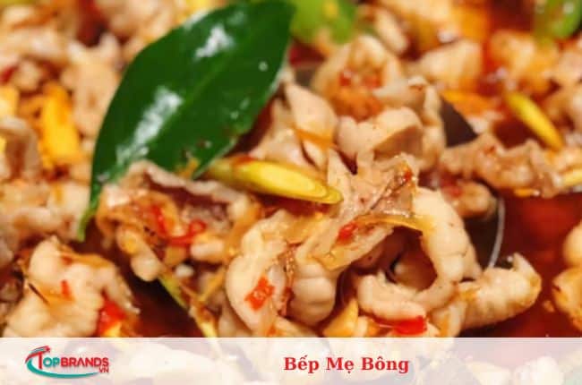 Chủ nhà hàng rất nhiệt tình và niềm nở. Chân gà sả ớt Bếp Mẹ Bông là loại chân gà to có nguồn gốc rõ ràng, được loại bỏ chân gà rút xương và được chế biến cẩn thận, vệ sinh. Chân gà giòn giòn, thấm đẫm vị chua cay cùng nước chấm nổi tiếng được thực khách yêu thích.
