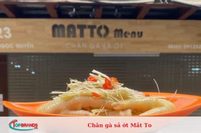 Nằm giữa phố cổ đông đúc nên quán không bao giờ vắng khách. Bạn không cần phải thử đồ ăn, chỉ cần nhìn vào hoạt động của cửa hàng đó, chắc hẳn bạn cũng đã biết được sức hấp dẫn của quán. Chân gà sả ớt Mắt To rất nổi tiếng với món Chân gà sả ớt, chân gà giòn, cay, mặn, chua ngọt, có chút vị ngọt bùi, đậm đà hương sả, tỏi và ớt. chân gà sả.