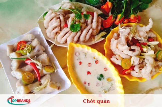 Chân gà rút xương là một trong những món ngon nhất của Chốt quán. Hương vị hoàn hảo với nước chấm siêu ngon, có vị quất, chua chua cay cay. Một hộp có giá khoảng 100.000 đô la, nhưng rất nhiều cho 5-6 người. Tại quán có rất nhiều món ăn vặt như: cánh gà, ốc, trà sữa… cho bạn nhiều sự lựa chọn khi đến quầy.