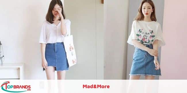 Các bạn gái chắc chắn sẽ tiếc hùi hụi nếu chưa cập nhật những mẫu chân váy jean đang làm mưa làm gió tại Mad & More shop. Đây là cửa hàng chuyên về chân váy jean, áo khoác jean, quần short jean, cũng như các mặt hàng khác và theo phong cách phóng khoáng, bụi bụi nên được nhiều bạn yêu thích. Cửa hàng nằm trên tầng 2 của một ngôi nhà, bên dưới là shop bán mắt kính và phụ kiện, trước nhà không có nhiều chỗ để xe nên khách đông sẽ không có chỗ luôn.